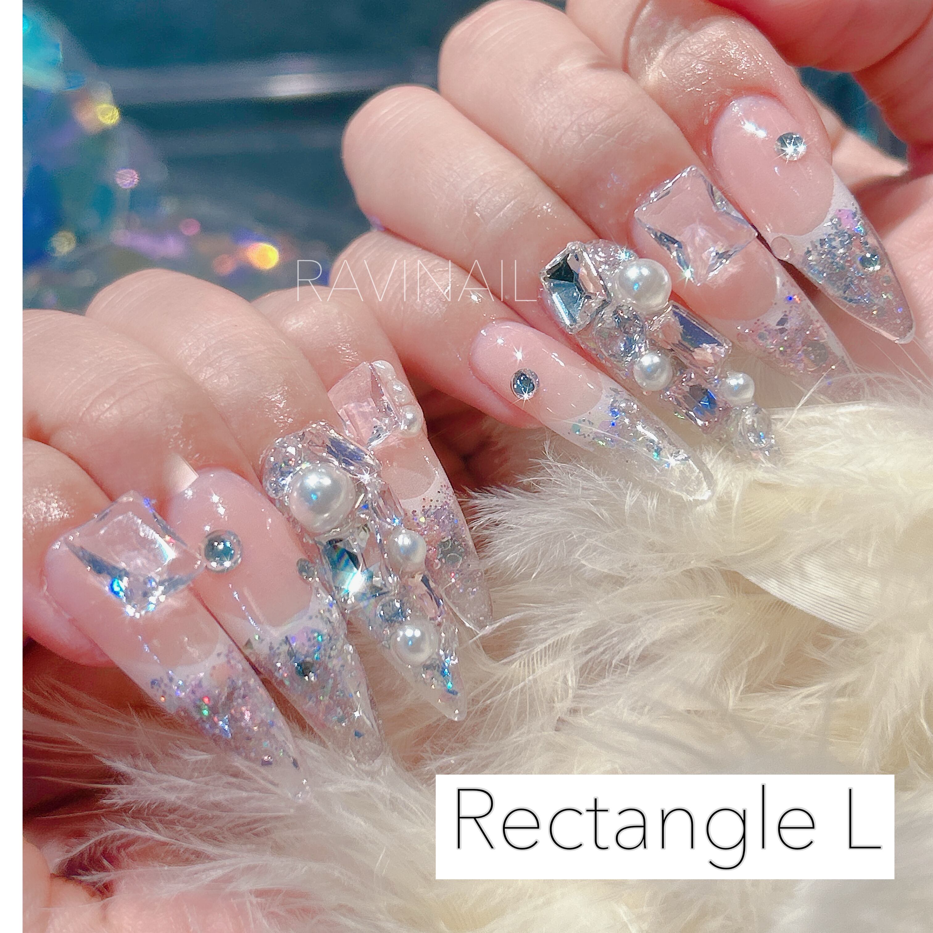 パールやVカットラウンドストーンと組み合わせてビジューアートにしたり
